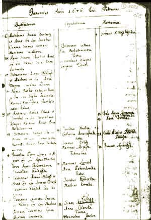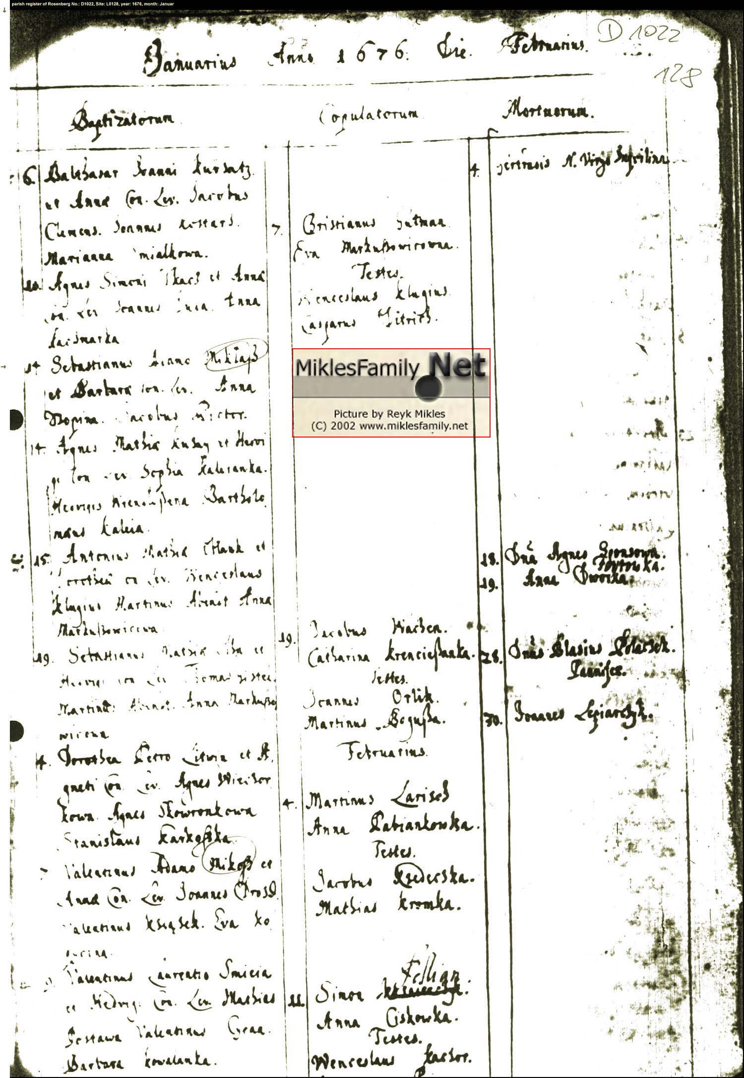 Parish register January 1676 of the little village "Schönwald" in the county seat "Rosenberg" where Mikles lived.